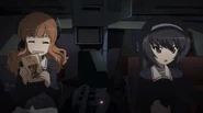 Durante la batalla de entrenamiento de Sensha-do de la escuela, Saori decide comandar el tanque, pero luego Miho la sustituye ya que se asusta dentro y parece ser incapaz de dar órdenes apropiadas. Luego del partido, Miho designa a Saori como operadora de radio del tanque mientras se reconoce su capacidad para comunicarse.
