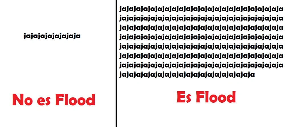 - No esta permitido hacer flood (repetir alguna letra, emoji o cualquier otra cosa más de 8 veces). De ser así, el usuario sera primeramente advertido, luego expulsado y por ultimo bloqueado de chat con un plazo de dos horas (si fue leve) o un plazo de 1 día (si es grave).