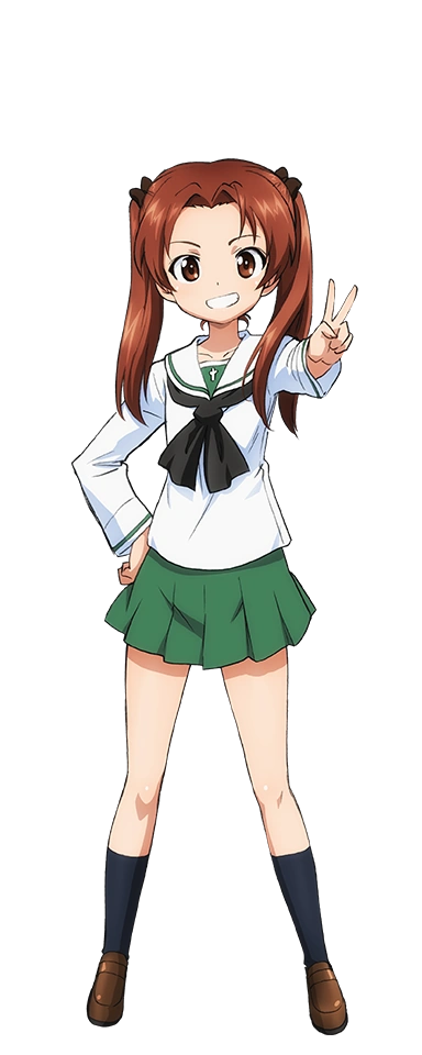 Anzu is a third-year student from Ooarai Girls Academy. Since she see it as possible way how to set back closure of Oarai Girls Academy to win 63rd National High School Senshado Tournament, she initiated reintroduction of Ooarai's Sensha-dō Club and became the commander, radio operator and later gunner of Turtle Team. Her team operates a Czech Panzer 38(t), later modified into a Hetzer during the battle against Kuromorimine Girls Academy.