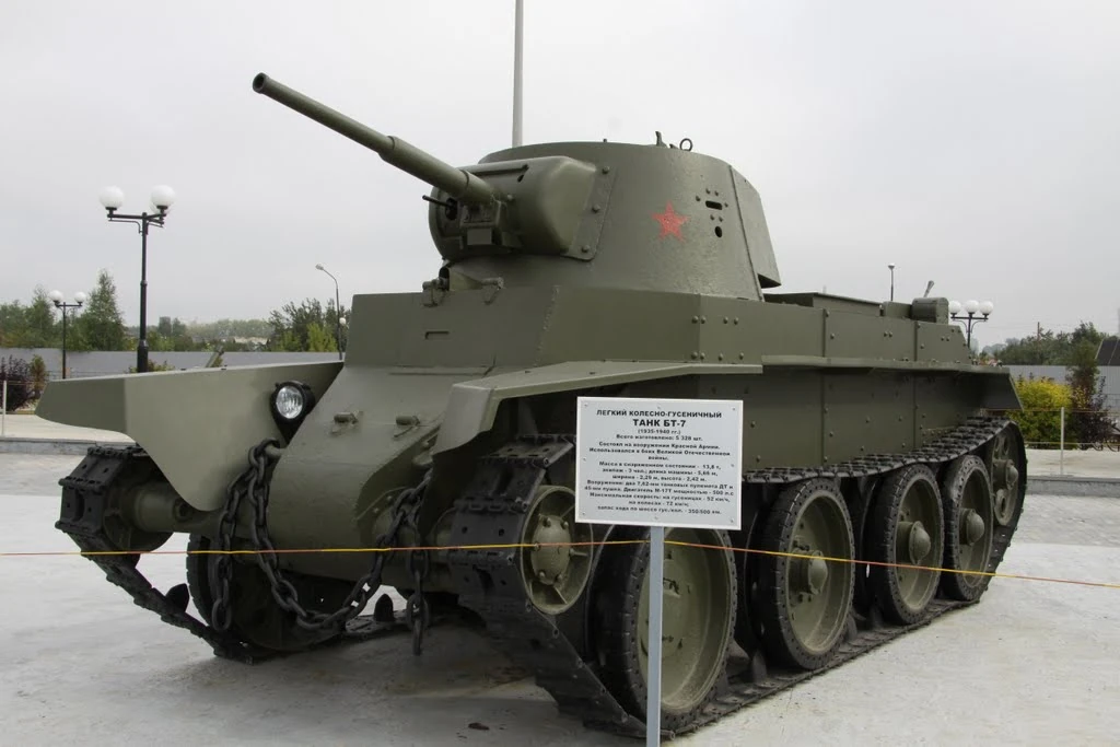 The BT-7 (БТ-7) i.e. Bystrokhodnyy tank 7 (Быстроходный танк 7) whats means "fast tank 7" was a Soviet light tank, being the last variant of the BT tank series, produced on a large scale between 1935 and 1940. The BT-7 has as its successor the famous T-34 medium tank.