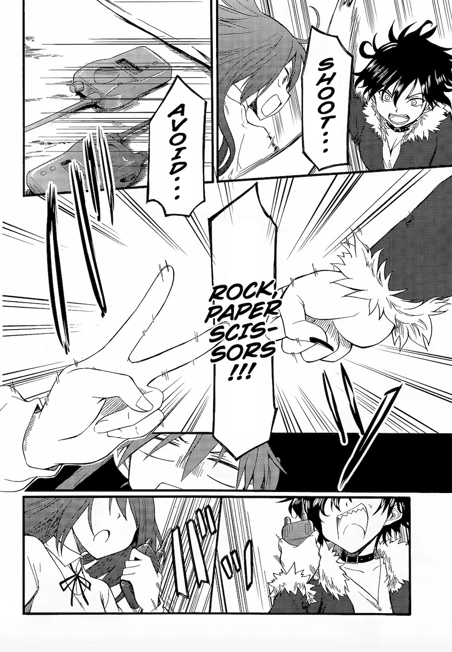 This has only been seen once during the events of Little Army Two, when Chifuyu Doi and Neko Yamamori faced off against each other. Emi Nakasuga initially displayed disbelief that they would incorporate Rock-Paper-Scissors in order to conduct a practice match. After Kita explained their situation, Emi was able to draw parallels to her time in Germany. She then observed the match, taking time to wrap her head around it.