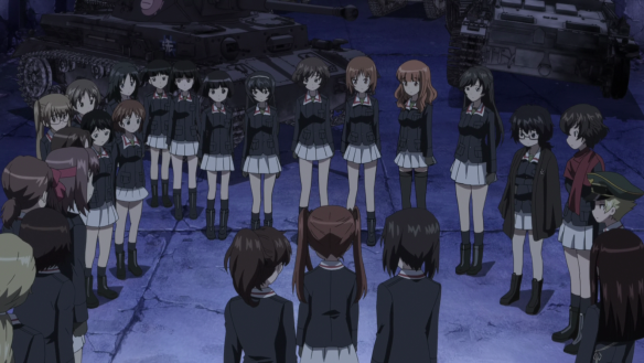 The episode opens with a flashback to when the student council discovers that their school will be closed down the following year unless it can distinguish itself meaningfully. Learning that Ooarai Girls Academy once had an active sensha-dō club, Anzu deduces that the championship school will not be closed down. Thus is explained the sudden resurrection of the defunct sensha-dō club and the earlier coercion of Miho Nishizumi into the team.