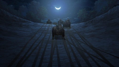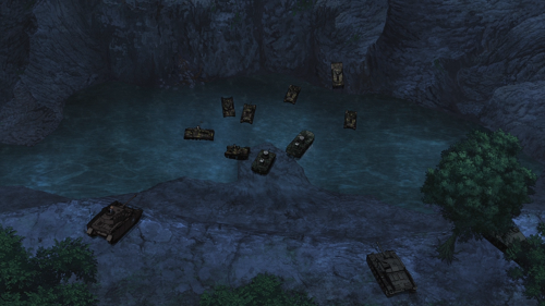 Mallard Team sneak deep behind enemy lines. With their turret repainted with the colours of BC Freedom and the high bushes concealing the rest of their vehicle, they begin taking non-lethal pot shots the ARL 44 tanks from behind. The Escalator students fall for the ruse, and conflict erupts between the two factions of the French school. Two SOMUA and two ARL 44 are knocked out, with any thought of fighting Ooarai completely forgotten.