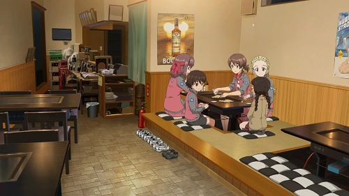 Back on the Ooarai school ship Saori accompanies Momo to a copy shop for some work for the student council. Inside the shop they are welcomed by a middle-aged man who tells Momo where to find the stuff they need. Shortly after a woman, apparently in a state of ill health, approaches and welcomes the two girls, with Momo addressing her as "mom", followed by five kids of various ages greeting Momo with joy. It is only at that point that Saori realizes they are Momo's family, having never met them before now. Saori spends some time with Momo and her family. She observes Momo's care towards her younger siblings and notes that her family is not a wealthy one. Hana, Mako, Yukari and Saori later talk about Momo's situation regarding her family and comment that she'll have difficulties attending a university under those circumstances.