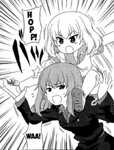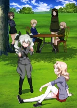 Erika carrying Katyusha after Ooarai's victory over All-Stars University Team]
