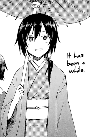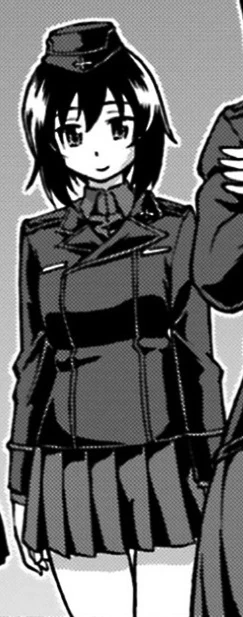 Kikuyo makes her first appearance in Little Army Two after the Bellwall vs. Kuromorimine Match, and shortly before the Bellwall vs. Ooarai Match. She arrived a few days before Shiho Nishizumi, in order to check up on Maho and Miho. As such, she is first seen when Emi and her Tiger I crew were visiting a nearby shrine, accompanying Maho Nishizumi. She greeted Emi Nakasuga and Hitomi Yuzumoto, remarking that it had been quite a while since they had last seen each other.