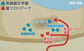 The battle between St. Gloriana Girls' College (bracket number 10) and Kuromorimine Girls' Academy (bracket number 13) was a match in the semi-finals of the 63ʳᵈ National High School Senshado Tournament. St. Gloriana had fought Yogurt Academy in the quarterfinals and Kuromorimine had fought Continuation High School. The match grounds comprised of desert, a hill, and a waterfront. The match ended in a victory for Kuromorimine Girls' Academy.