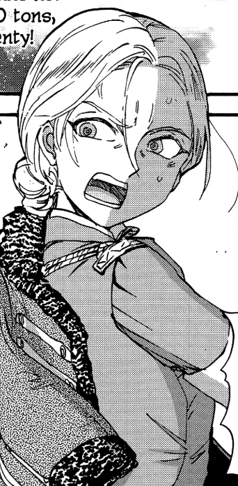 During the match against Tatenashi's Centipede Team, she commanded a R35 and as usual stood by Asparagus. She didn't do anything special during the match expect noticing too late the lurking Te-Ke destroying their flag tank. Following the match she is seen arguing and fighting with Bordeaux on who is responsible of the defeat.