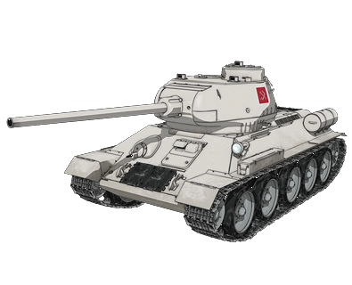 Pravda comes with two T-34/85 (commanded by Katyusha and Klara) to help Ooarai against All-Stars University Team, they were assigned to Sunflower Platoon commanded by Maho. Once arrived at the top of Hill 203, the team got struck twice by the Karl-Gerät and got to relocate before the next strike. During the retreat Katyusha's T-34 was heavily assaulted by Pershings, to buy some time Klara sacrifice herself by delaying the opponent and finally taking a direct hit from the Karl destroying the tank. After the retreat to the Amusement Park the T-34 was assigned to Southern Gate. When the University Team broke out in the park, Miho relocate Southern Gate tanks to Eastern to support leaving only the T-34, the Tiger I and Tiger II. They were assaulted by three Pershings and one Chaffee, the T-34 destroyed one Pershing while the two others were destroyed by Maho and Erika while the Chaffee escape. The T-34 was one of the few tanks to not be trapped at the amphitheater, it then teamed up with Leopon and Anteater Team, where persued by three Pershing destroyed one, it then take pursuit of the Bermuda Trio alongside the Tiger(P) and the Tiger II using the Tiger(P) overpowered speed to slip behind, it then rams Rumi's Pershing alowing the Tiger II to destroy it until the T-34 was destroyed by Megumi.