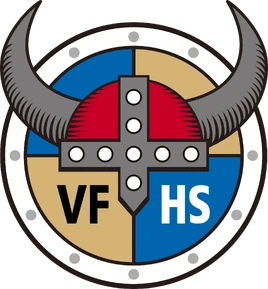 - Their logo consists of a Horned helmet on a round shield with a yellow and blue checkers backdrop with VF on the lower left part and HS on the lower right part (VF stands for Viking Fisheries and HS for High School).